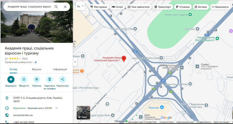 Адреса: вул. Кільцева дорога, 3-а, м. Київ, 03187