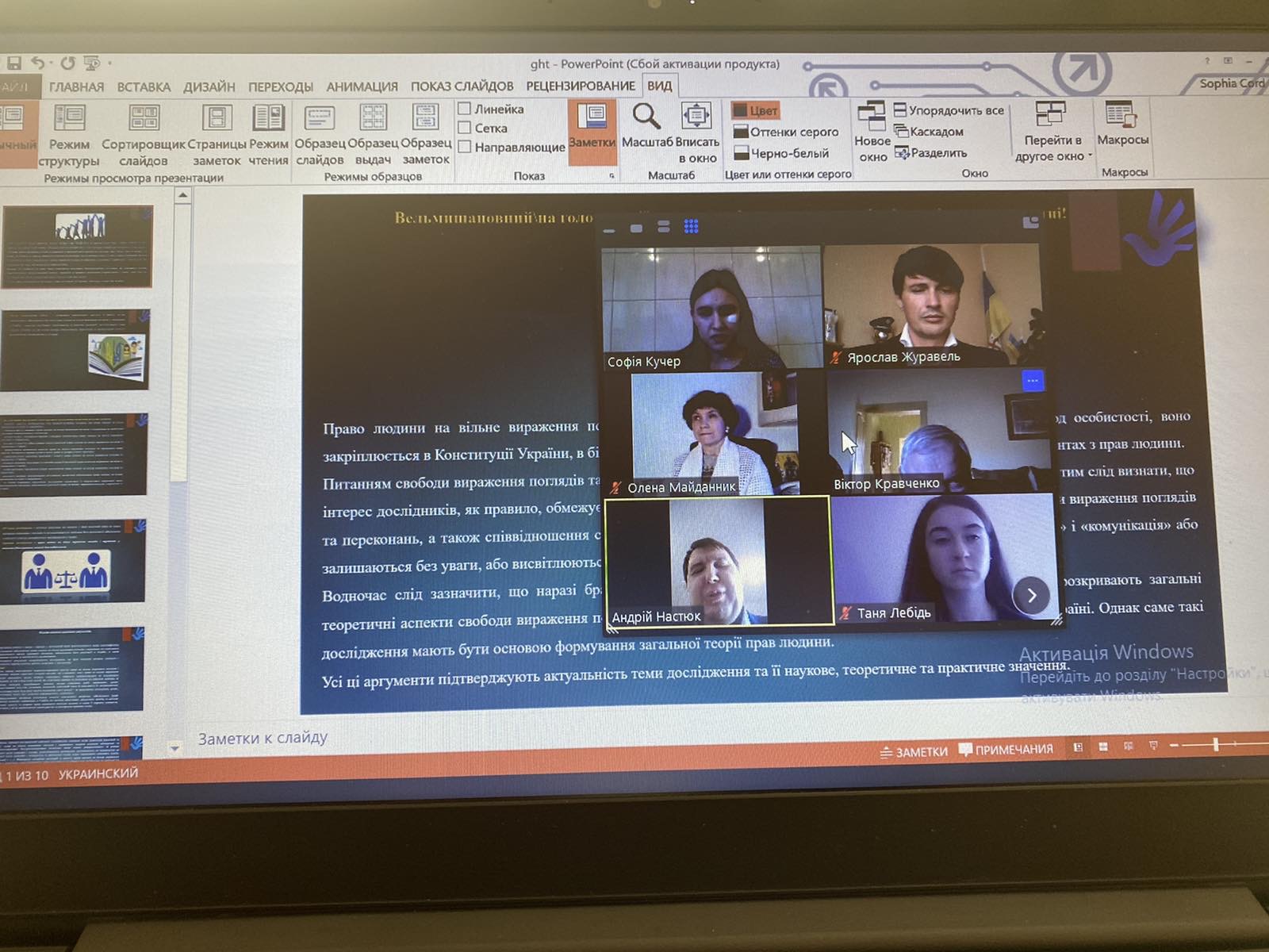 19 жовтня 2021 року на платформі дистанційного спілкування Zoom відбувся фаховий семінар щодо попередніх експертиз дисертацій аспірантів кафедри конституційного, адміністративного та фінансового права на здобуття ступеня доктора філософії з галузі знань 08 «Право» за спеціальністю 081 «Право» Кучер Софії Анатоліївни на тему «Забезпечення права людини на вільне вираження поглядів і переконань: конституційно-правовий аспект» та Капліна Сергія Володимировича на тему «Конституційно-правове забезпечення діяльності професійних спілок в Україні у контексті зарубіжного досвіду».