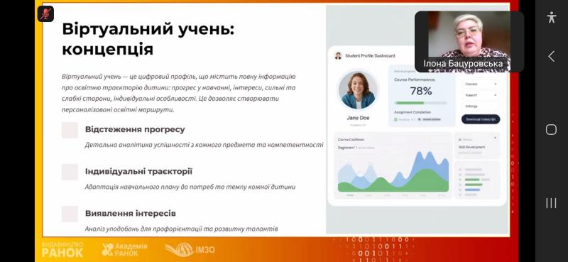 14 жовтня в рамках курсу підвищення кваліфікації для педагогічних працівників відбулася лекція, проведена Бацуровською Ілоною Вікторівною, доктором педагогічних наук, професором кафедри інтелектуальних систем та цифрових технологій. Тема лекції "Цифрова підтримка Нової української школи" охопила важливі аспекти впровадження цифрових технологій у навчальний процес, їх вплив на освітні практики та можливості, які вони відкривають для вчителів і учнів. Учасники мали змогу ознайомитися з новими підходами до використання цифрових ресурсів у навчанні, а також обговорити виклики та перспективи, що виникають у процесі інтеграції цих технологій в освітню систему.