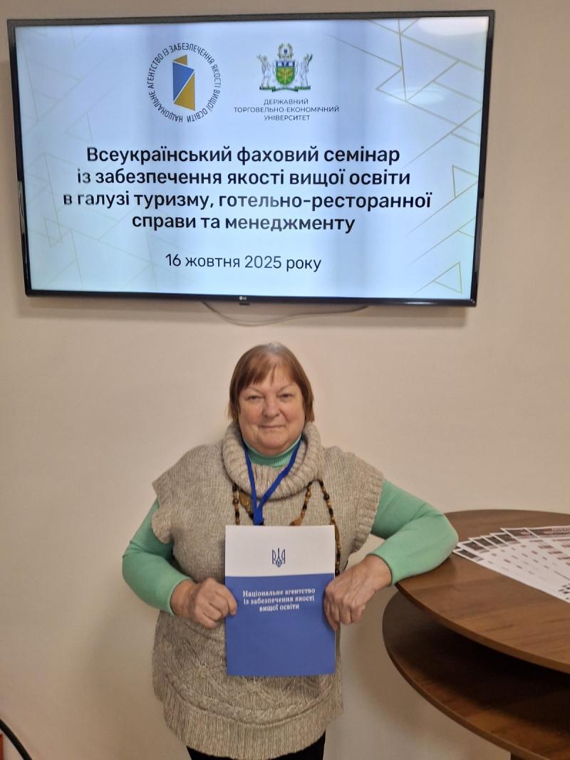 16 жовтня 2025 року на базі Державного торговельно-економічного університету відбувся Всеукраїнський фаховий семінар із забезпечення якості вищої освіти в галузі туризму, готельно-ресторанної справи та менеджменту, ініційований Національним агентством із забезпечення якості вищої освіти. Перед представниками українських закладів освіти виступили Голова Національного агентства Андрій Бутенко, його заступник Іван Назаров, голови експертних рад галузей освіти Сфера обслуговування, Фінанси та підприємництво, Менеджмент і маркетинг, які представили аналіз основних результатів виконання освітніх програм різними ЗВО, наголосили на основних помилках і показали позитивні приклади з практики оцінювання ОП. Після цього відбулися сесії питань та відповідей по окремих освітніх галузях, де учасники форуму змогли отримати відповіді на найбільш нагальні питання від представників експертних рад.