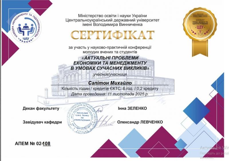 Здобувачі першого (бакалаврського) рівня вищої освіти під керівництвом професорсько-викладацького складу кафедри маркетингу АПСВТ, в межах діяльності наукового гуртка, долучилися до науково-практичної конференції молодих учених та студентів «Актуальні проблеми економіки та менеджменту в умовах сучасних викликів».