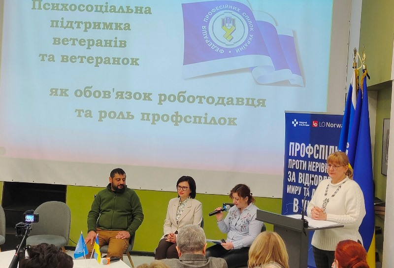 Під час панельної дискусії «Інтеграція ветеранів у трудові колективи» із доповіддю «Психосоціальна підтримка ветеранів як обов’язок роботодавця та роль профспілок» виступила заступниця Голови ФПУ Надія Корінна.