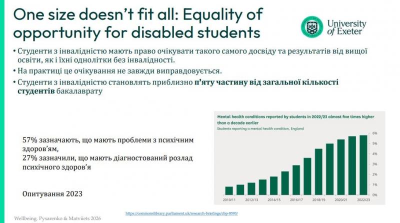 Під час заходу було представлено досвід університетів Великої Британії щодо впровадження практик wellbeing, адаптації навчального процесу для здобувачів з особливими освітніми потребами та розвитку систем підтримки студентів.