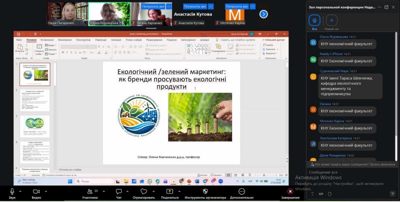 У межах вебінару було розглянуто актуальні питання використання екології як інструменту маркетингової стратегії, вплив екологічних чинників на розвиток бізнесу та поведінку споживачів, а також сучасні тенденції розвитку екологічного маркетингу.